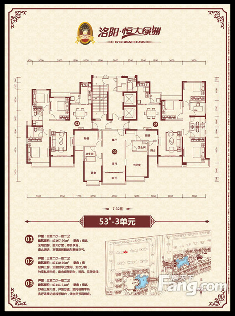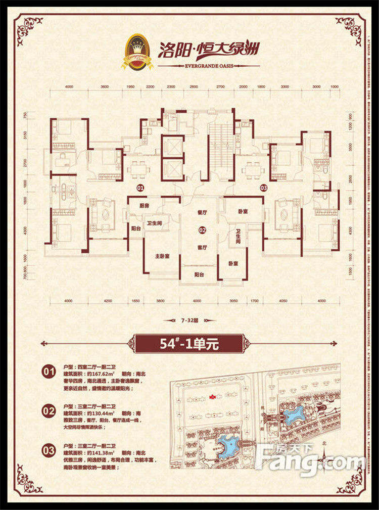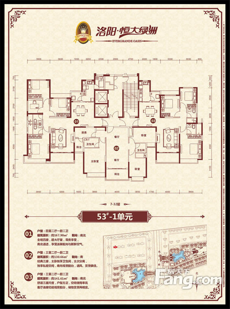 恒大綠洲項(xiàng)目位于洛陽(yáng)市瀍河區(qū)洛陽(yáng)市東出口,洛河以北、中州東路兩側(cè)、二廣高速以西,項(xiàng)目獨(dú)享洛河北岸3500多米河岸線,且處于洛陽(yáng)市城市東西中軸線中州路東段,臨中州路街面長(zhǎng)2000余米,有多路公交車(chē)直達(dá)。恒大綠洲全部項(xiàng)目占地面積約1338畝,規(guī)劃建筑面積近301萬(wàn)平方米,居住單位2.06萬(wàn)余戶(hù),除居住建筑外,項(xiàng)目?jī)?nèi)還配置了運(yùn)動(dòng)中心、綜合樓(會(huì)所)、幼兒園、小學(xué)、中學(xué)、商業(yè)配套、五星級(jí)酒店等,整個(gè)項(xiàng)目建成后,將形成約6.6萬(wàn)人的居住規(guī)模。全部項(xiàng)目累計(jì)總投資超過(guò)100億元人民幣,預(yù)計(jì)上交稅收超過(guò)15億元人民幣。