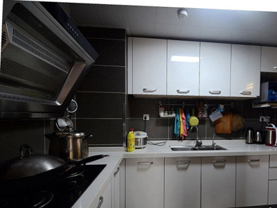 廚房的墻壁讓人很喜歡,純白的櫥柜有種十分干凈的感覺。