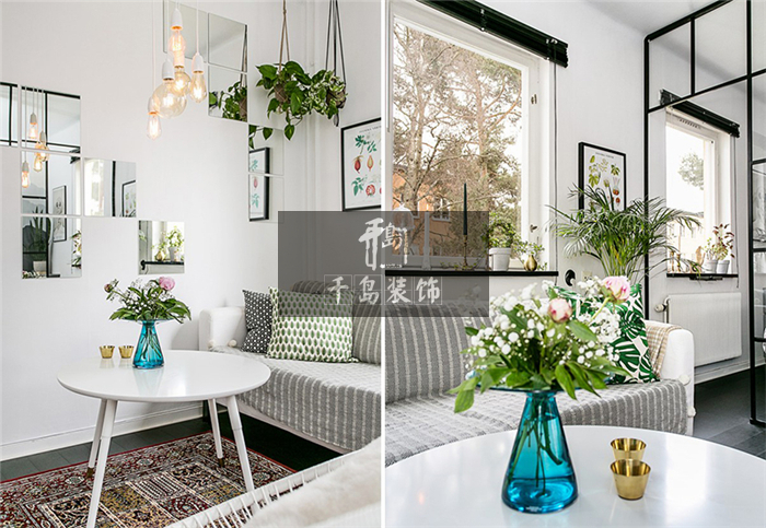 若增添太多的工業(yè)元素,稍不注意就會(huì)打破整個(gè)家居環(huán)境的平衡,這時(shí)候就需要能夠提亮北歐風(fēng)格主體的物件了。上面案例中就是運(yùn)用了大量的綠植元素來調(diào)和不同風(fēng)格的家具家飾,使之成為一體。作為北歐風(fēng)家居的重要元素,它無疑是平衡混搭原則的絕佳利器。