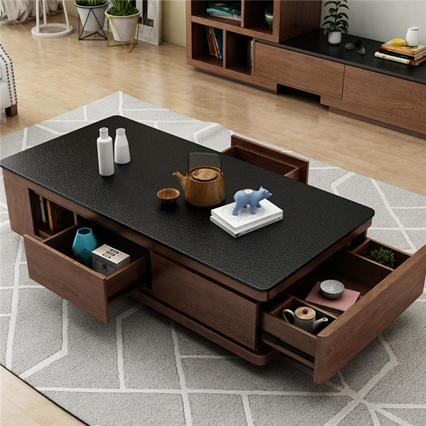 同樣,茶幾電視柜這類也可直接購買成品家具。這款茶幾整體由天然火燒石搭配實(shí)木制作而成,選材、造型非常的高端時(shí)尚,并且實(shí)用性也很強(qiáng)。