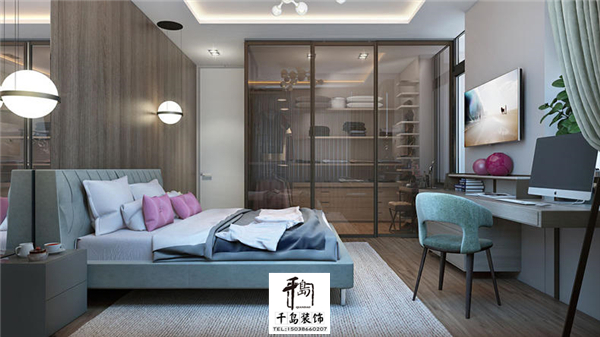 房間的四面八方都是采用了玻璃,讓房間更加的通透舒適,雙層的窗簾也是為喜歡睡懶覺的你準備的,在拉上窗簾的那一刻就是黑夜。因為空間小電視柜和書桌都是連一起的,還采用了懸空的設(shè)計,讓設(shè)計感無處不在。