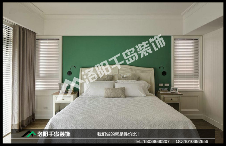 美式田園風(fēng)格的家具通常具備簡化的線條、粗獷的體積,顏色清淡。它兼具古典主義的優(yōu)美造型與新古典主義的功能配備,色調(diào)明快單一,一塊綠色背景墻將房間變得活潑起來,它更適合現(xiàn)代人的日常使用。