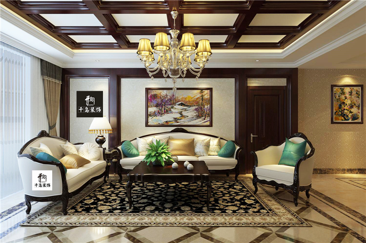 美式地面裝飾以地毯和木地板居多,多為自然風格松木、柚木及楓木等。在居室設計中,腰線、踢腳線起著視覺的平衡作用,利用它們的線形感覺及材質、色彩等在室內相互呼應,可以起到較好的美化裝飾效果。