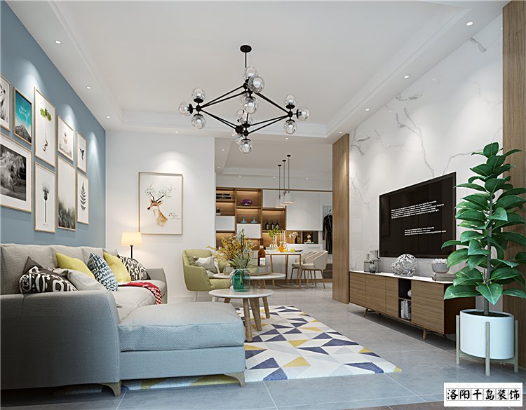 一對(duì)年輕的90后,喜歡色彩絢爛的空間,偏愛原木色的家具。鑒于小戶型空間面積有限,所以定義為北歐風(fēng)。整體色彩搭配冷色系為主,局部搭配跳色,深色的地板,結(jié)合灰色墻面,局部藍(lán)色,配套原木色加白色的家具。當(dāng)然,一面原木色飾面板結(jié)合雅士白石材的電視背景墻,更是畫龍點(diǎn)情之比,低調(diào)而不失高雅。