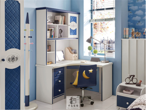 孩子逐漸長大,活動范圍也逐步增大,房間應該預留足夠的活動空間,我們可通過定制組合家具,如書柜書桌一體化家具等,以提高空間利用率,讓孩子能夠自由的玩耍。