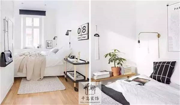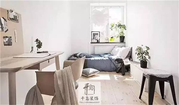 選擇粉嫩色系或灰藍色系的床單、地毯或抱枕,搭配白墻和淺木桌椅,輕輕松松打造北歐風。