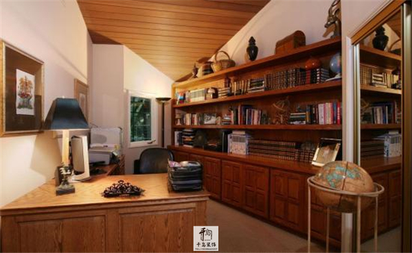 美式家居的書房簡單實(shí)用,但軟裝頗為豐富,各種象征主人過去生活經(jīng)歷的陳設(shè)一應(yīng)俱全。