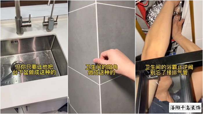 四、不管你是半包全包還是自己裝,在你不懂的情況下,你能參與的地方真的很少,但你只要讓他把臺下盆做成這種的,衛(wèi)生間的羊角做成這種的,衛(wèi)生間的浴霸止逆閥,別忘了接排氣管,你家裝完幾乎就沒什么大毛病。