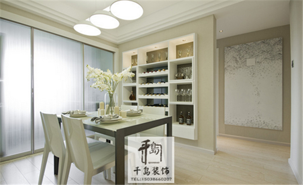餐客廳分開的,我們可以參照下圖種的,作為墻壁隔斷,再設(shè)計(jì)儲物柜和酒柜,這樣既增加了儲物空間,而且也很美觀。
