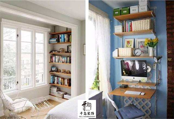 陽(yáng)臺(tái)的墻面和墻凹進(jìn)去的空間也都用起來(lái)吧,陽(yáng)臺(tái)瞬間變書房,簡(jiǎn)簡(jiǎn)單單、干干凈凈。