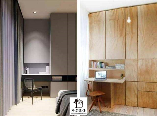 儲(chǔ)存柜與墻之間的縫隙也是好地方,放個(gè)書桌正合適!這簡(jiǎn)單的書桌,正是辦公的好地方。
