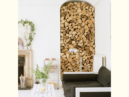 只要在凹面上稍加修飾一下,也能成為一個很好的儲藏空間。在壁爐旁邊的話,可以把柴都堆砌到這個凹面里,木材自然形成的有序堆疊又形成了一塊裝飾墻,復(fù)古而歐式。