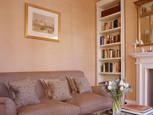 由于半開放式的空間需要一點空間區(qū)域的劃分,所以陽臺和的壁爐中間又有了一段凹陷的空間,客廳的背景墻上裝飾是必不可少的,雖然這種凹陷的空間并不起眼,但是如果配上這樣美麗的畫作的話,不起眼也能成為客廳的一個風(fēng)景點。