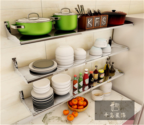 304鋼材防腐防水,底部是一整塊的設(shè)計(jì)使置物更穩(wěn),可以根據(jù)廚房空間大小選擇單層或多層掛置來打造干凈明亮的廚房環(huán)境。
