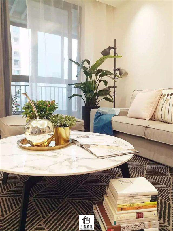 白色大理石茶幾臺面,再擺上古銅色的花盆,體現(xiàn)出一個大氣、時尚的家;