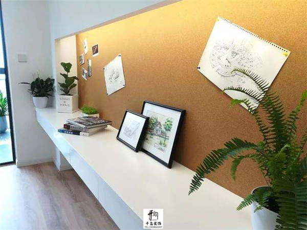 墻面做軟木板,用于訂畫、訂照片等,既顯得方便又文藝;