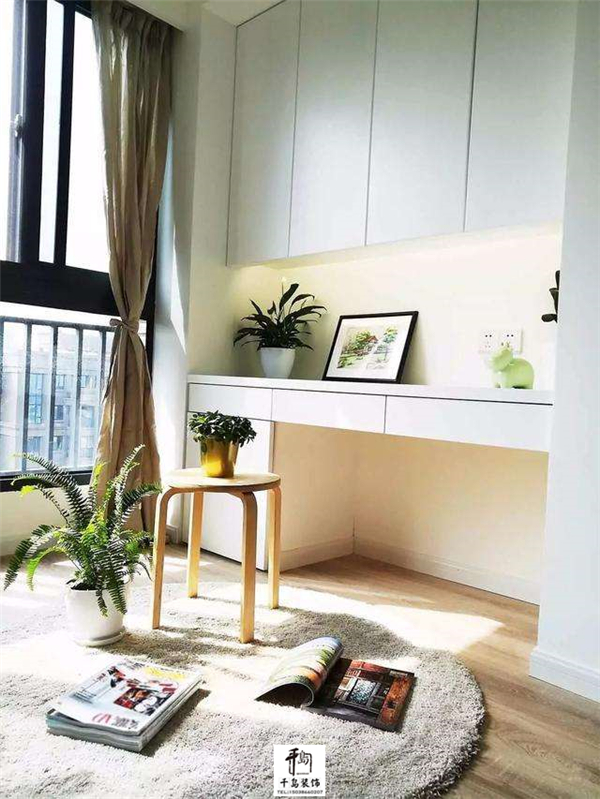 客廳陽臺一分為二,準確的說是功能上一分為二,一半是曬衣區(qū),一半是休閑區(qū)(種花種草),滿足了多種功能需求,而且曬衣區(qū)剛好客廳看不到,所以整體也更加美觀;