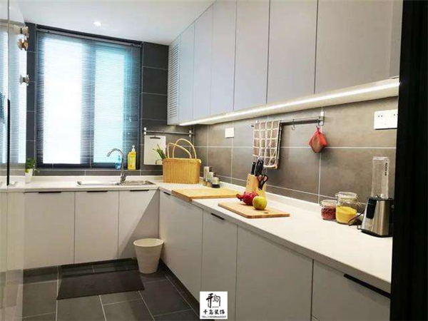 業(yè)主想要一個大的廚房,這么看來這算是滿足了業(yè)主的要求,大的U字型操作臺面,使用起來不要太爽了;